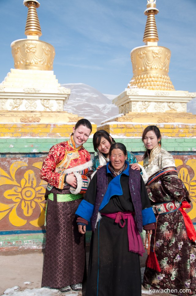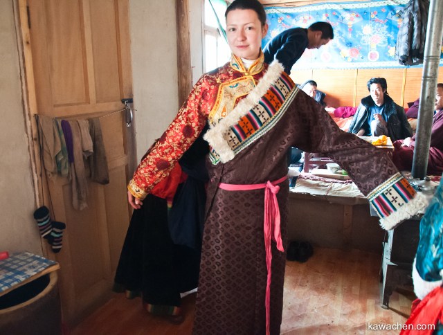 Церинг Чид помогает мне одеть амдо чубу — это не так-то просто!