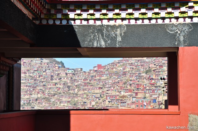 Утром выспавшиеся и отдохнувшие мы поехали в Ларунг Гар. От Серты до института ехать около 15 километров вверх по дороге. Ходят и маршрутки, и такси. Добраться очень просто. Но я снова беспокоилась, что меня не пустят. На въезде в Ларунг Гар часто стоят полицийские и не пускают иностранцев. Но в этот раз их не было, и меня никто не останавил. Заехав в монастырь, первые минуты стоишь и не веришь своим глазам: такого огромного города-монастыря я еще нигде не видела. Кампус состоит из сотен монашеских домиков, застилающих несколько склонов гор!