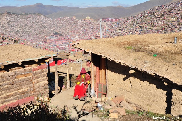 Целый день мы с Вангденом гуляли по улицам Ларунг Гара, общались с монахами, слушали учения и молитвы, наблюдали за дебатами монахов. Больше всего поражает масштабность территории института. Сотни домиков на нескольких склонах гор, расположенных почти вплотную друг к другу. Ближе к вечеру мы пошли на встречу с одним ламой. Нам нужно было добраться с одного конца Ларунг Гара в другой. Несмотря на то, что мы постоянно переспрашивали как идти, все же мы ни раз заблудились в этих маленьких и сходу одинаковых улочках. Единственный шанс найти нужный дом — положиться на интуицию! Представьте, что вам нужно найти монаха, живущего в каком-то из этих домов: