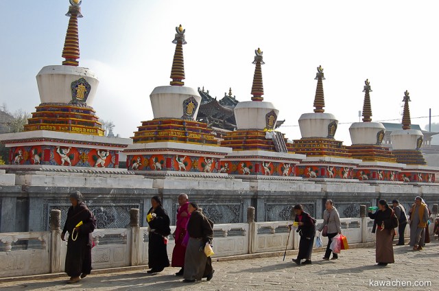 тибетцы ходят вокруг ступ, вознося свои молитвы